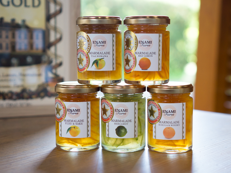 おかげさまで9年連続金賞を達成しました。金賞を受賞した作品は、へだたちばなのマーマレード、赤レモンのマーマレード、ベルガモットのマーマレード、柚子と日本酒のマーマレード、スルガとスコッチウイスキーのマーマレードです。