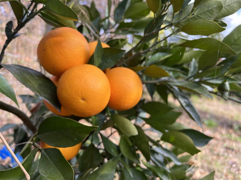えなみ農園のネーブルオレンジは、アメリカ産の「ワシントンネーブル」の枝変わり種で、静岡県三ケ日町の白柳氏が発見した「白柳ネーブル」です。草生栽培という、除草剤を使わない栽培方法で育てています。大玉で甘味が強く、果汁も豊富。オレンジの香りもよく、まろやかな味わいが広がります。